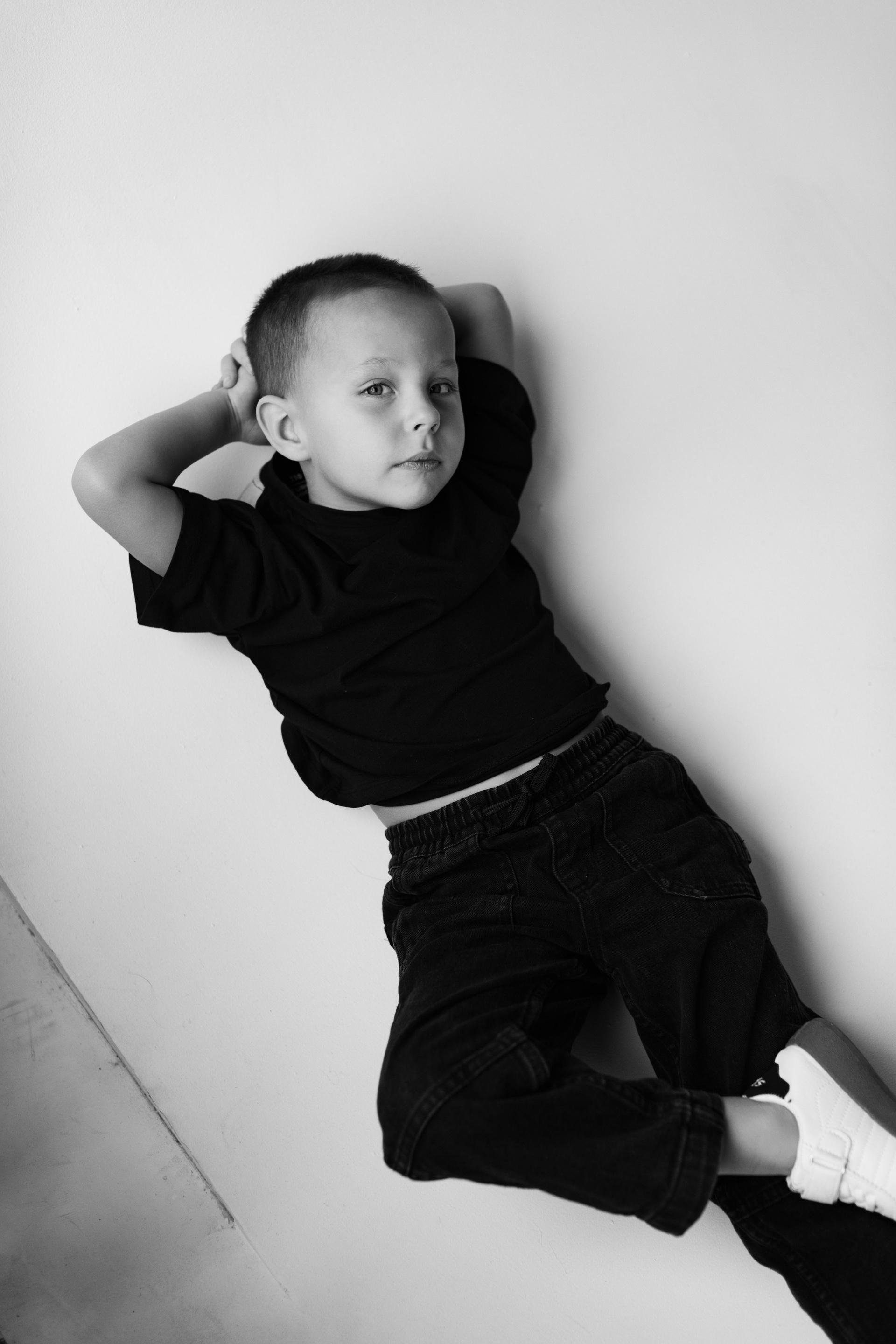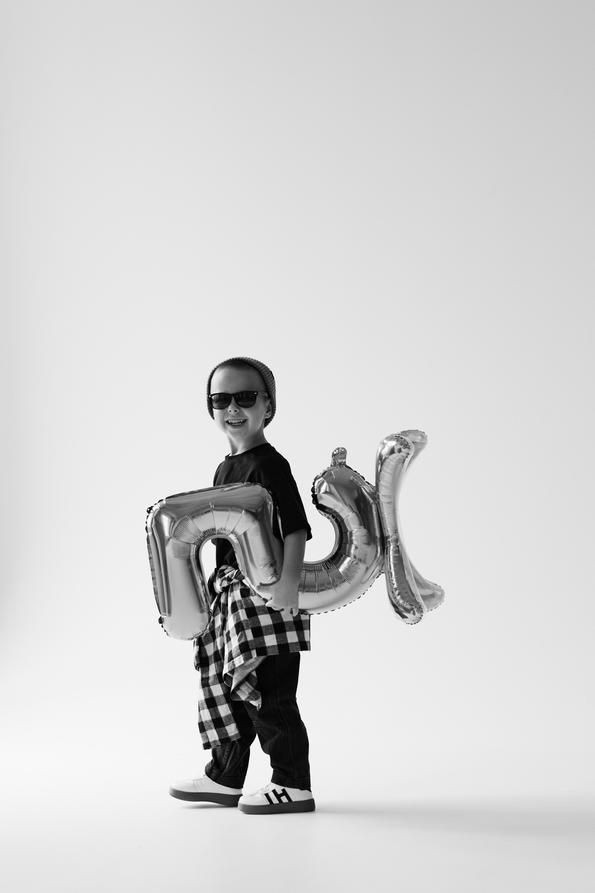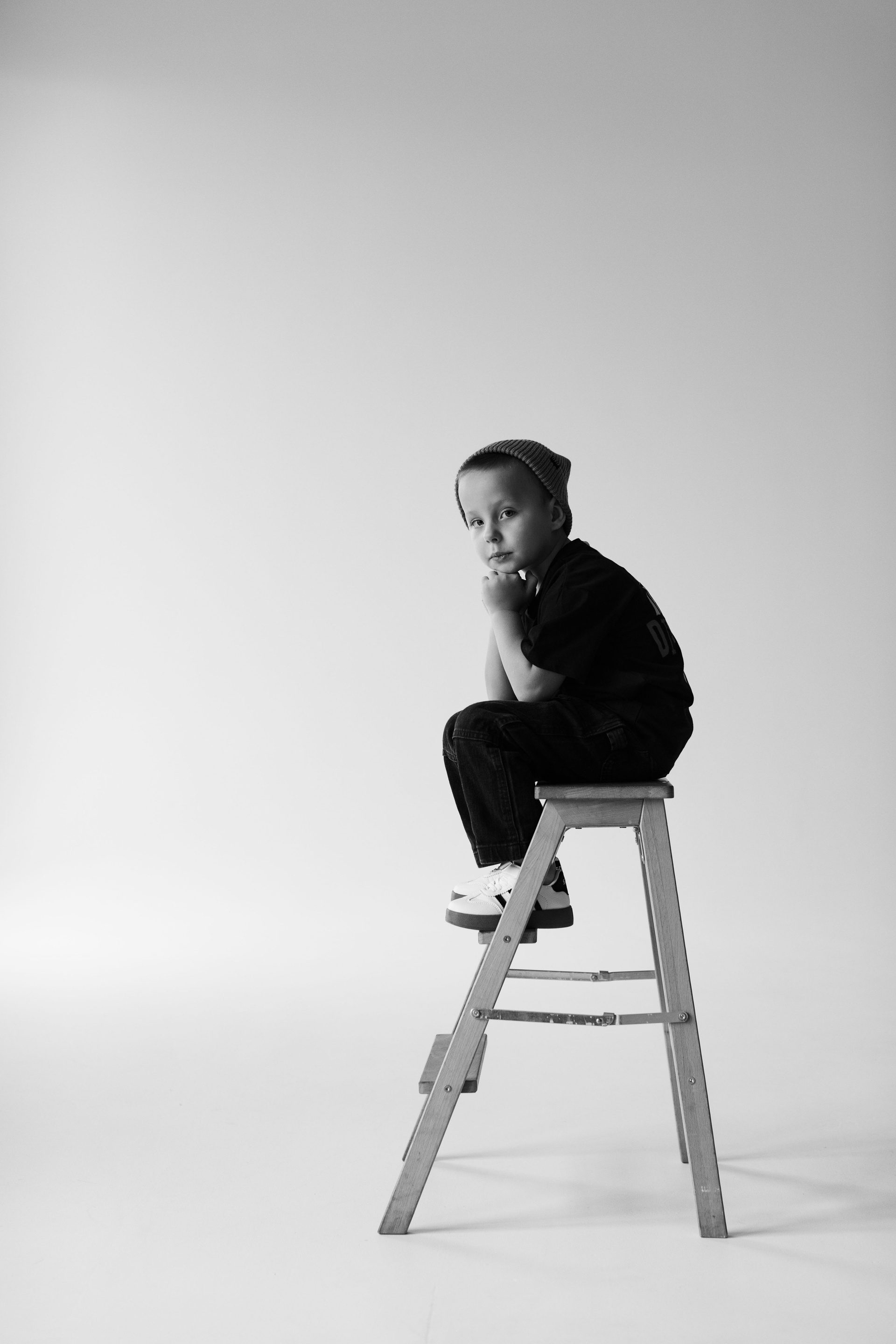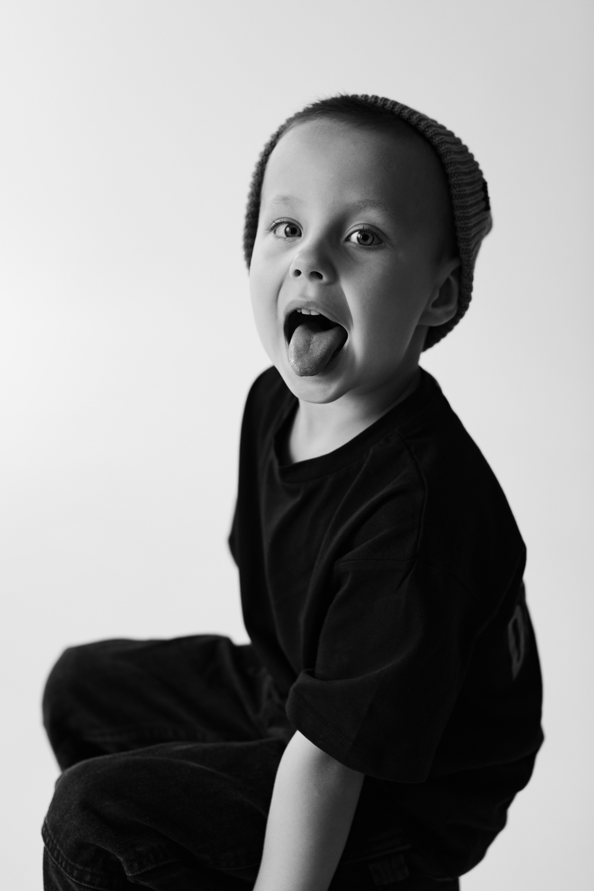 Катя, Рома и Ваня. Семейная фотосессия на циклораме чб