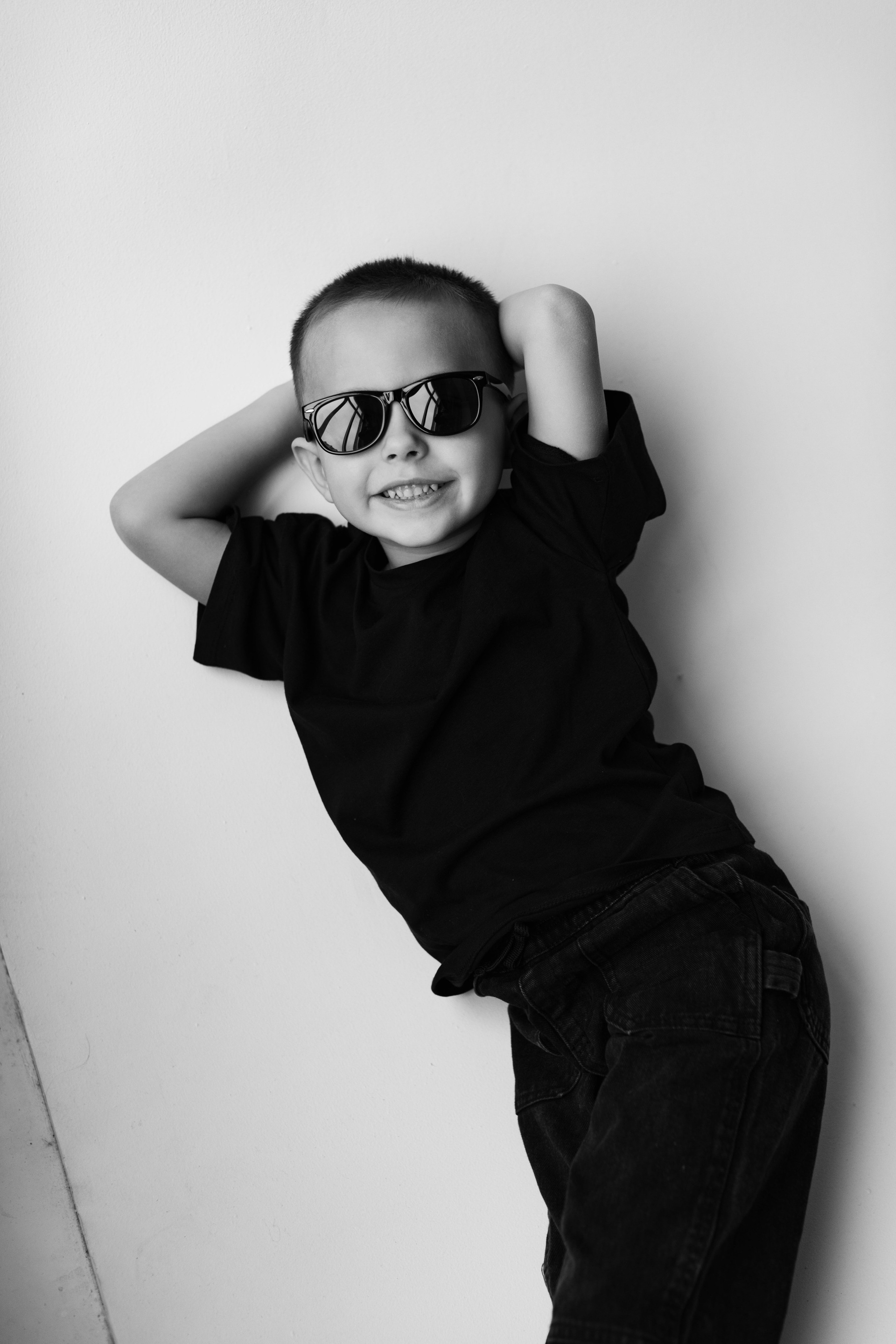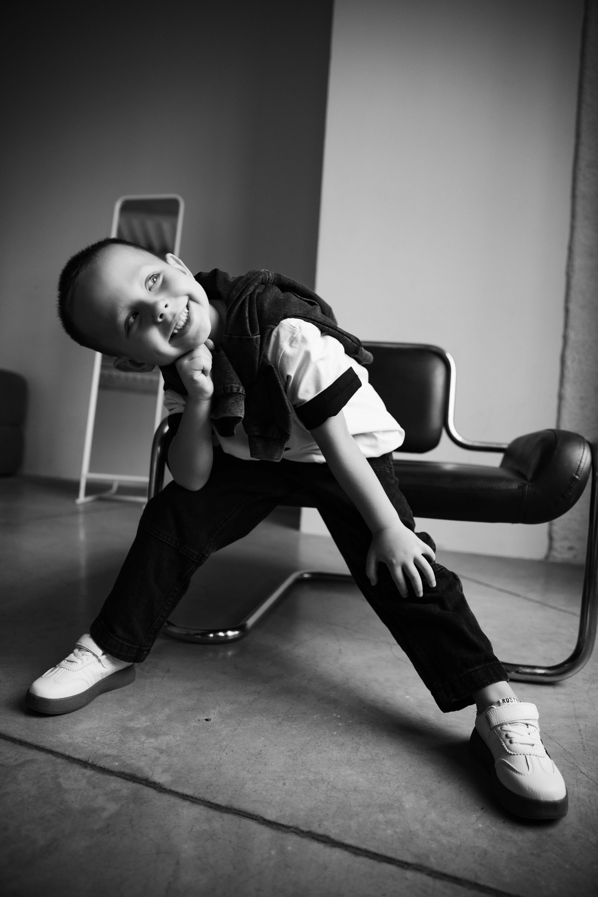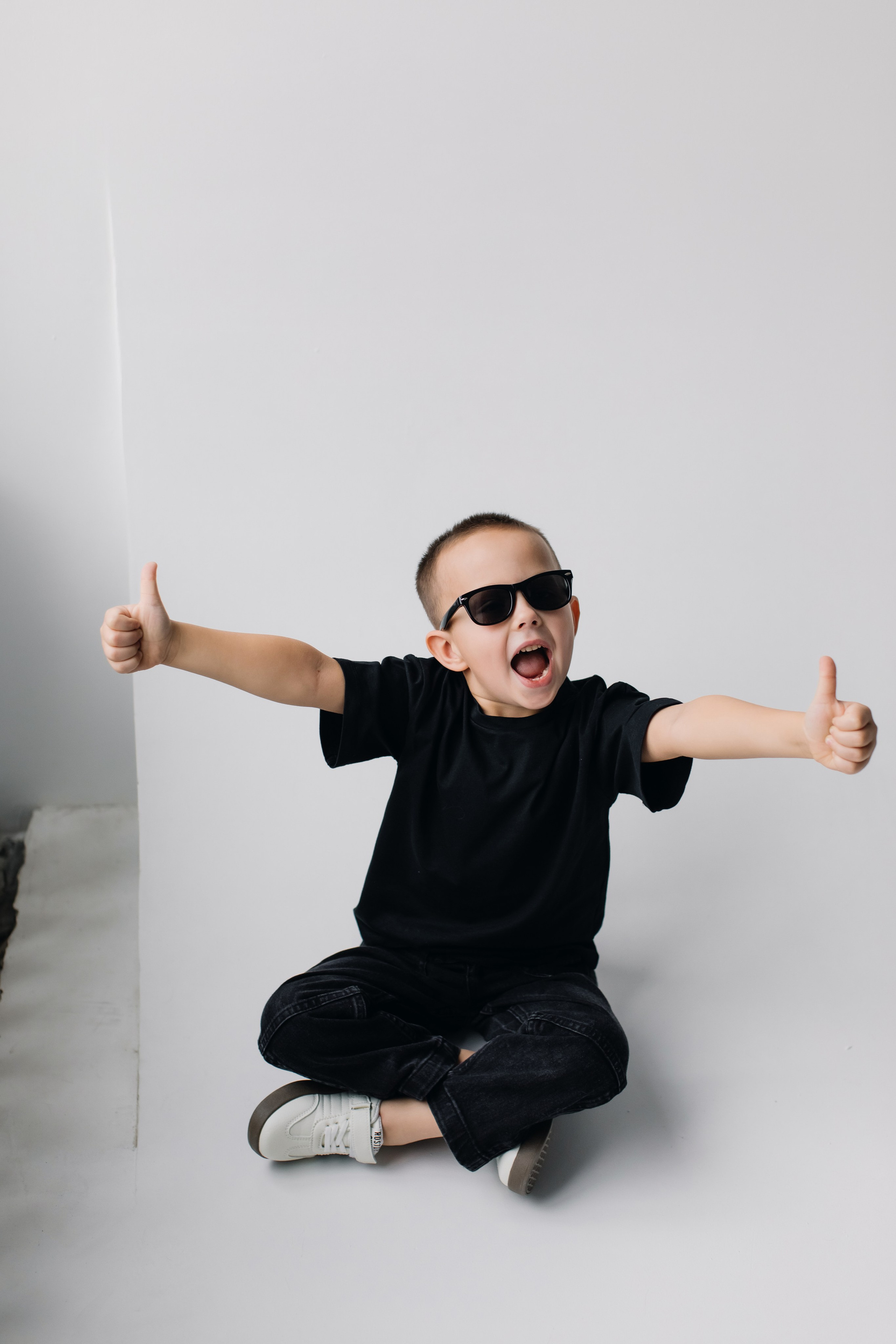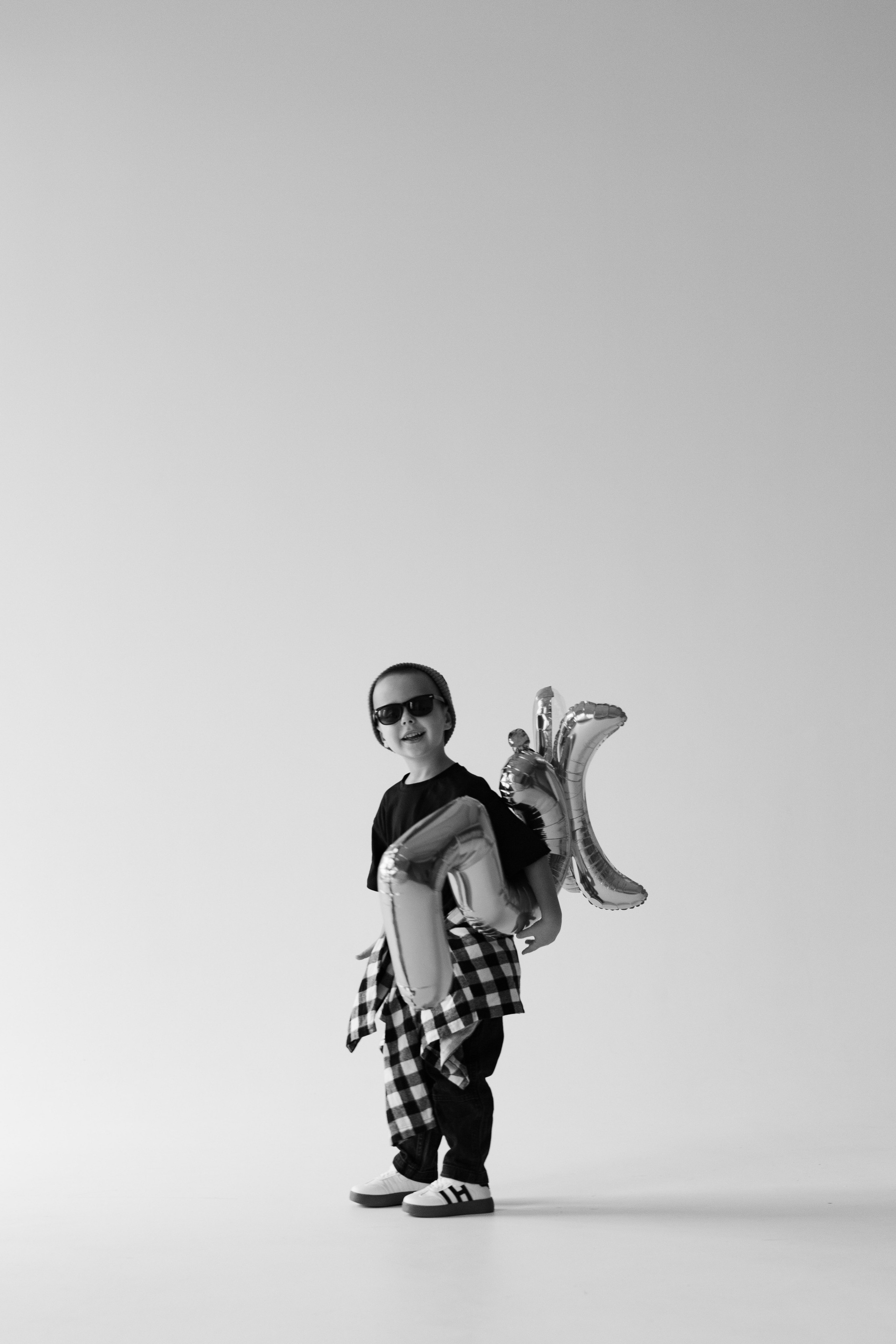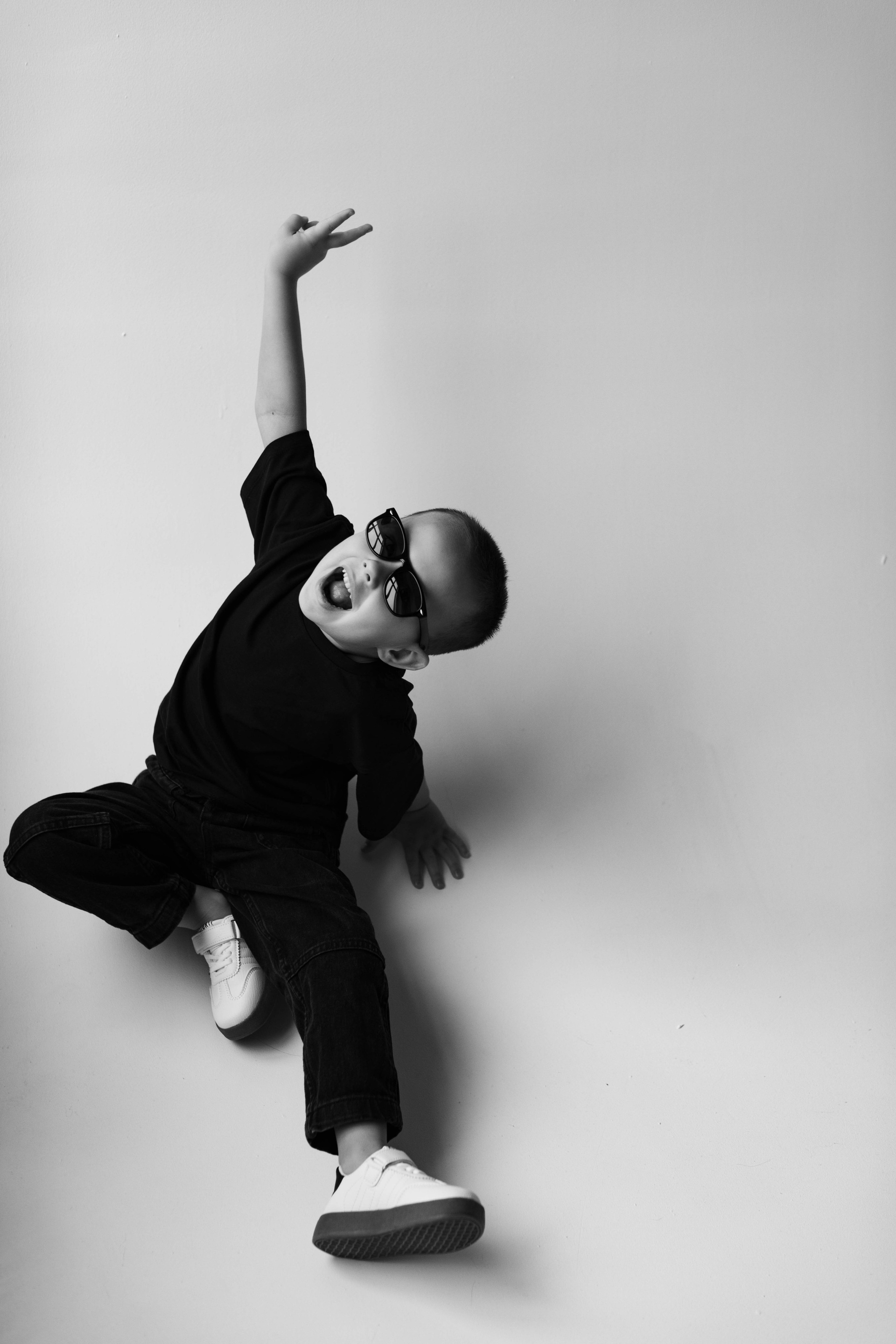 Катя, Рома и Ваня. Семейная фотосессия на циклораме чб