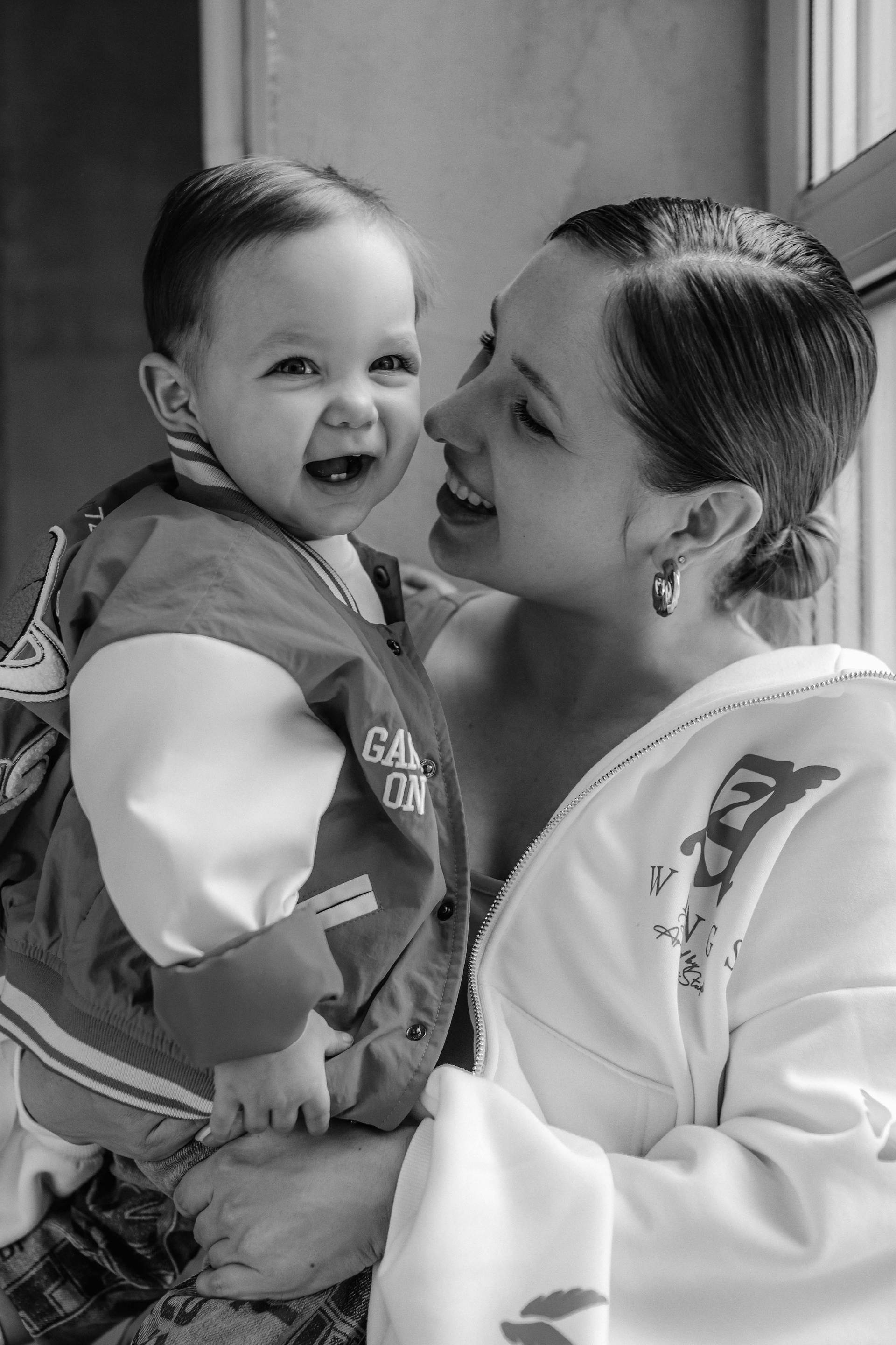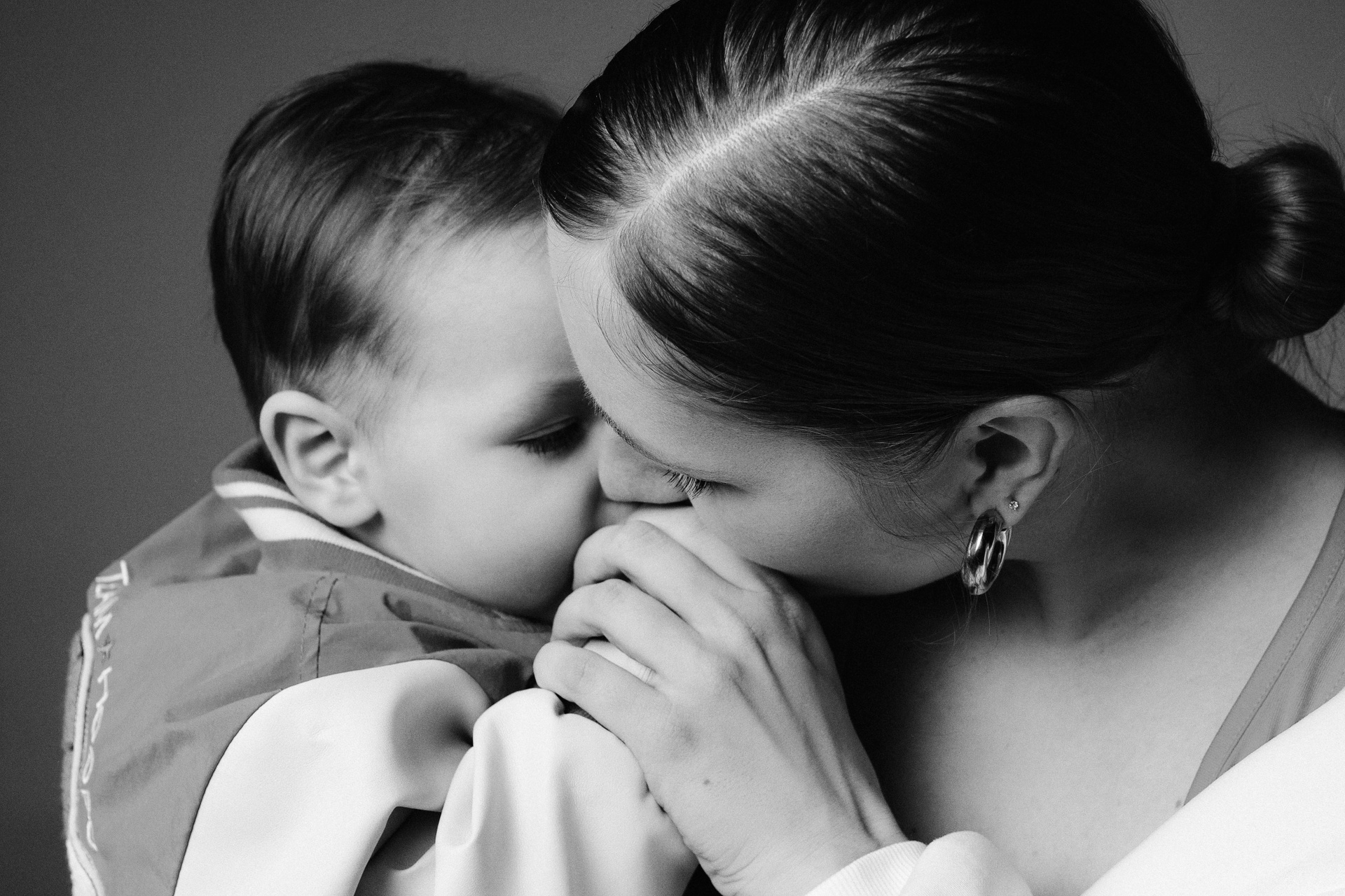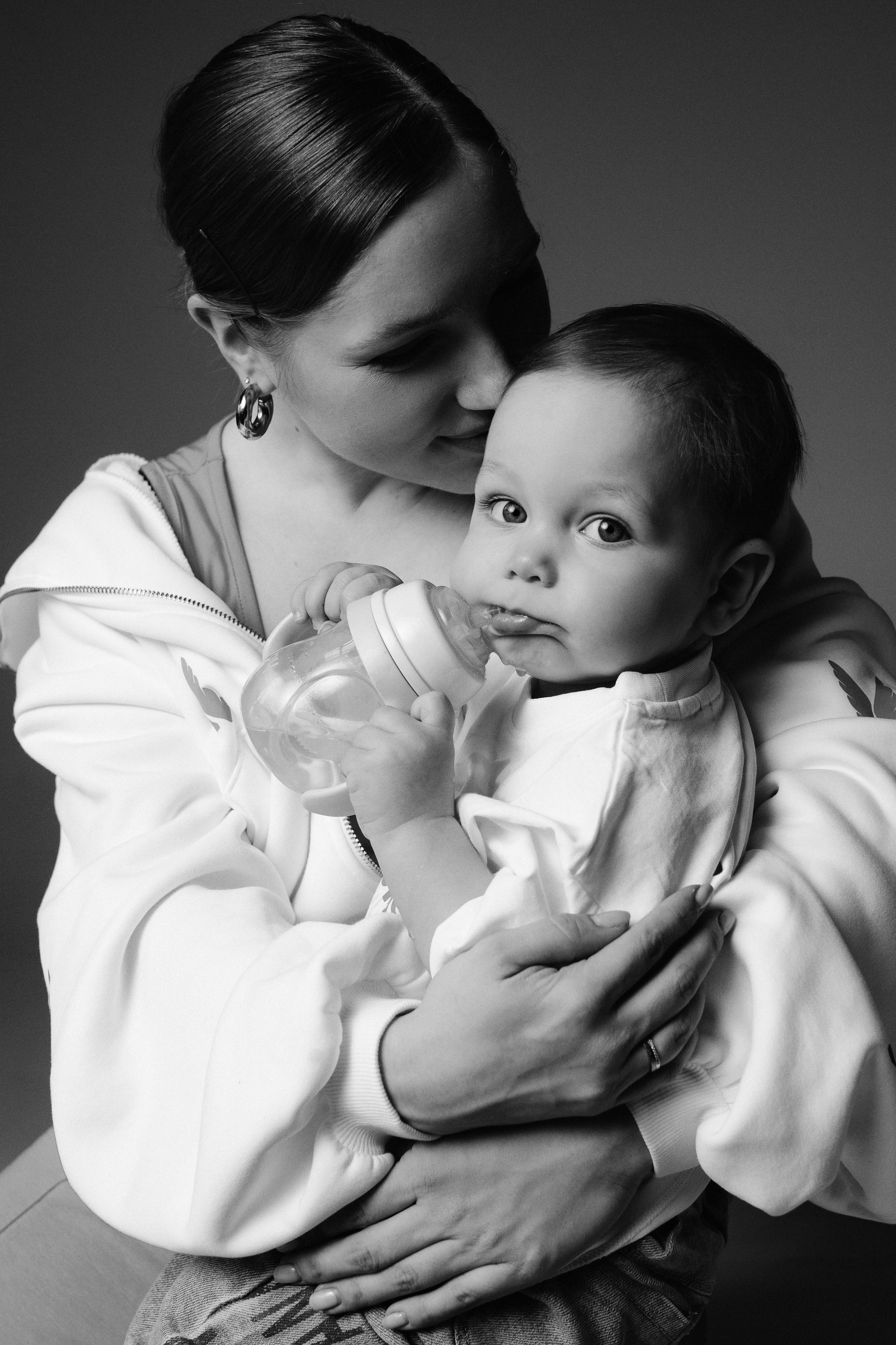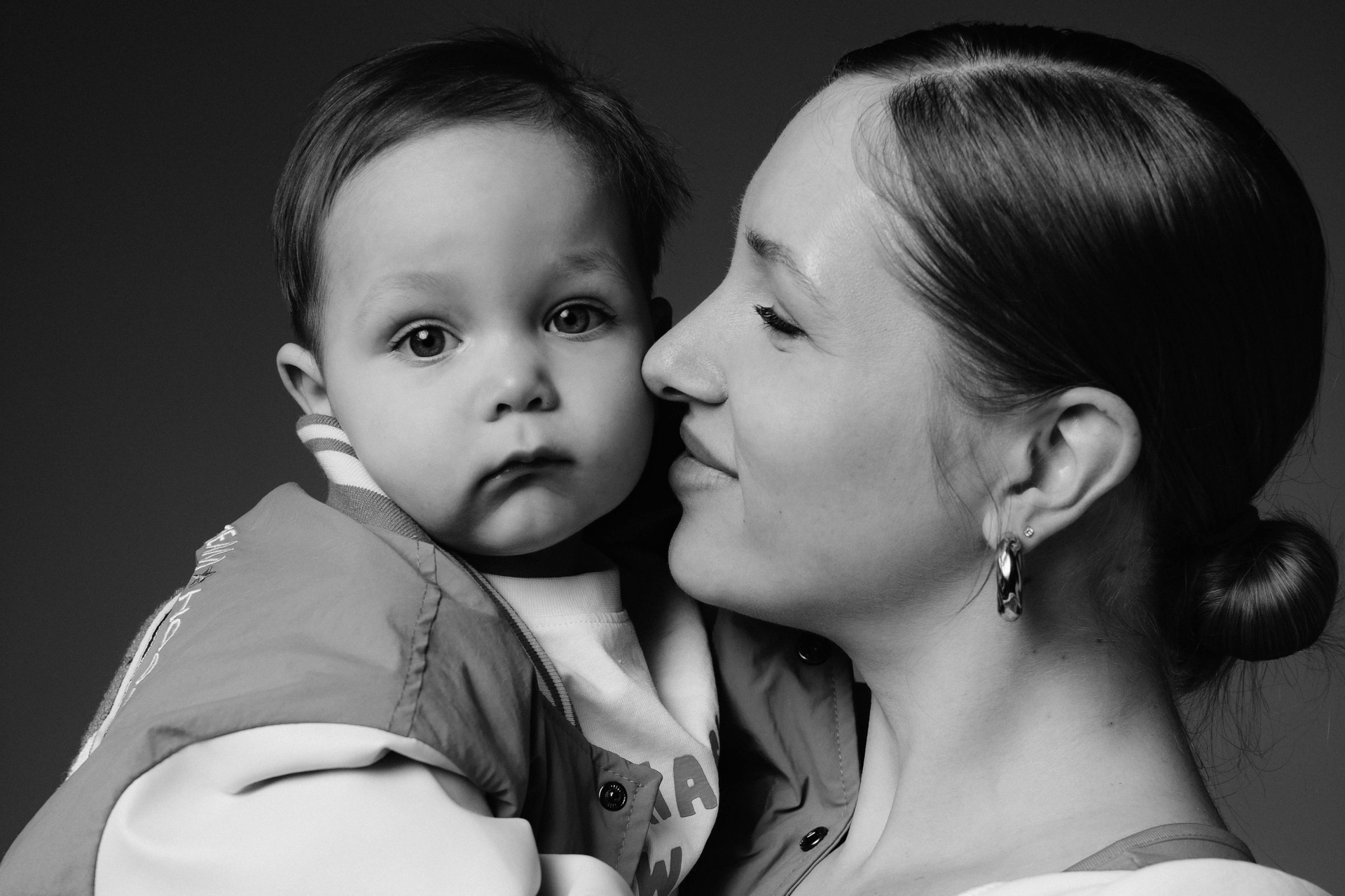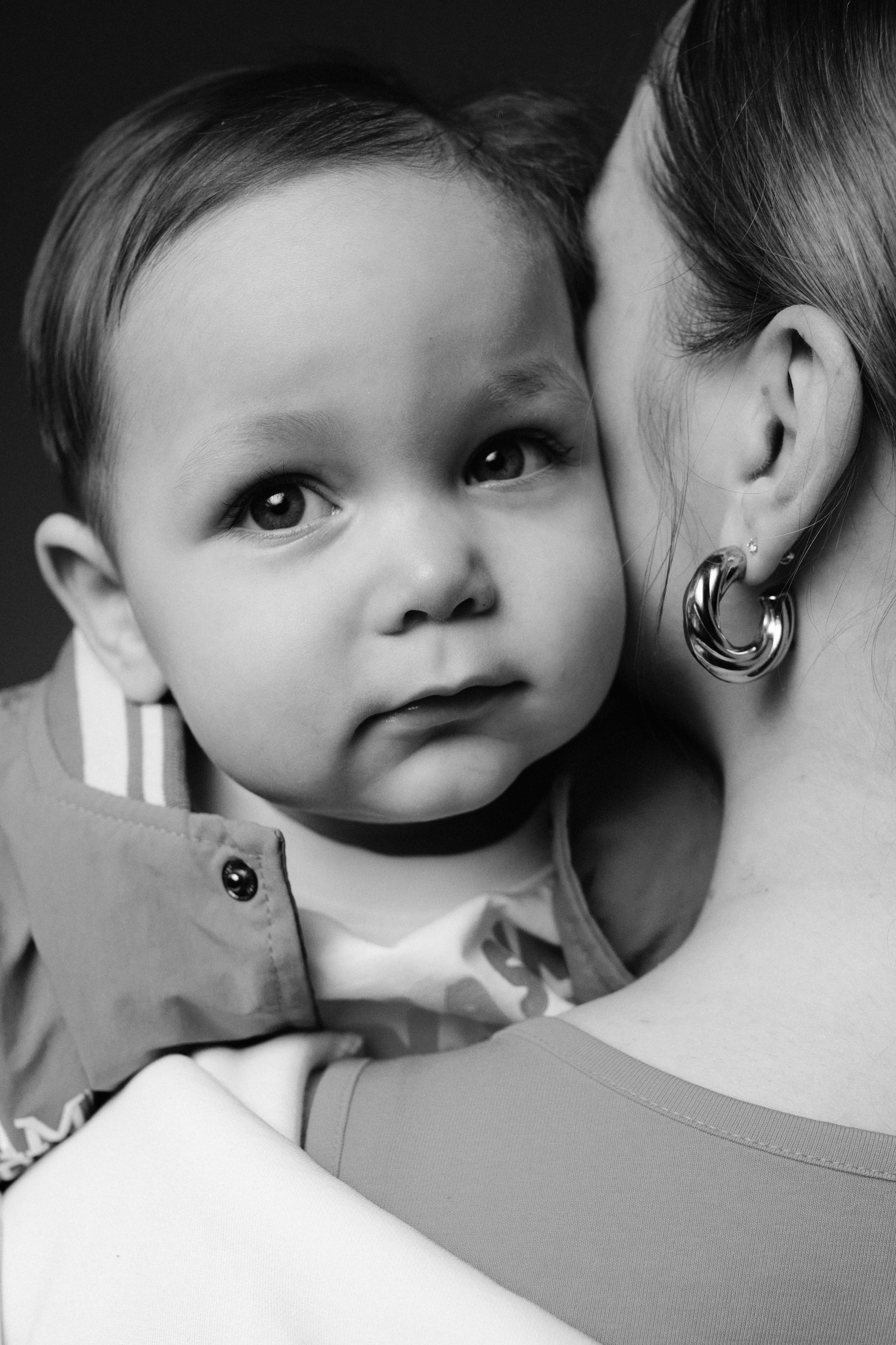 Катя, Рома и Ваня. Семейная фотосессия на циклораме чб