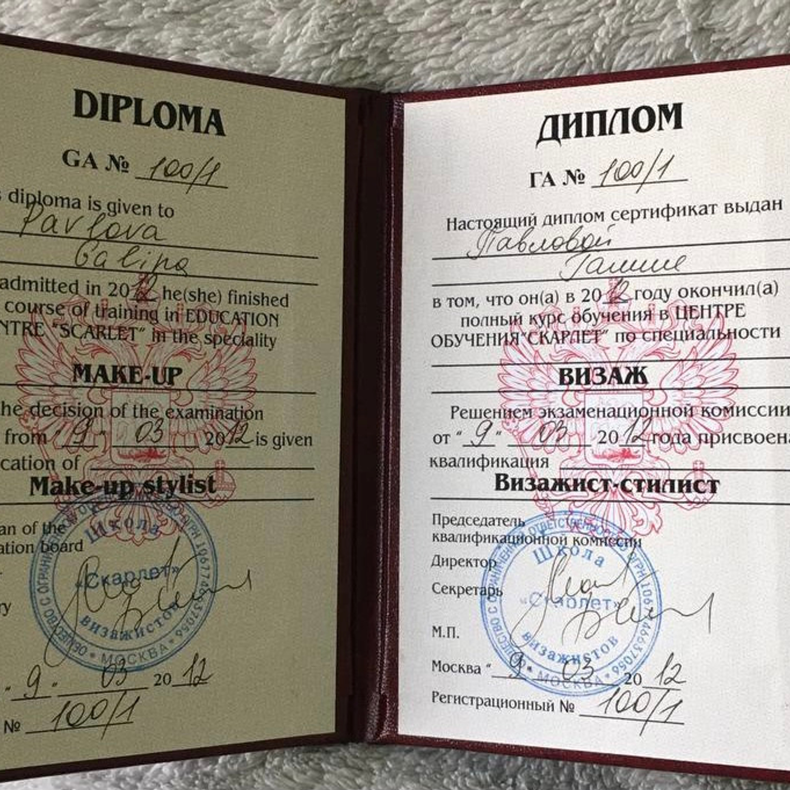 - Школа визажистов «Скарлет» квалификация «Визажист-стилист»
